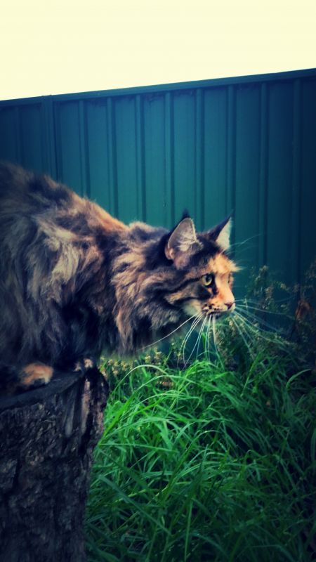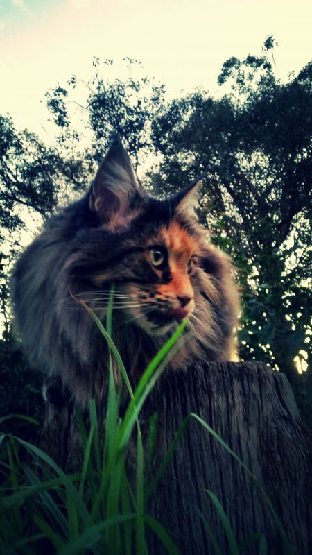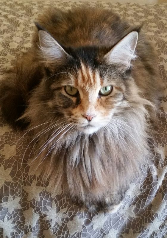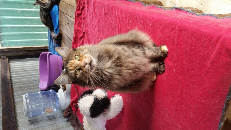 Bella is a Uk import. Lovely big boned girl with lovely temperament. She is HCM clear and comes from Somersisle Maine Coons. She loves to talk.